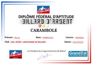 Avant l’épreuve, on sentait la grande motivation du candidat. Pas de stress, Rémy enchaine les premières figures sans difficulté. Le diplôme ne pouvait pas lui échapper. Rémy décroche avec brio le DFA d’Argent avec un total de 95 points sur 120 possibles. Un grand bravo à Rémy !!! Tous nos encouragements pour la suite de sa progression. Joueur et encadrants se sont retrouvés autour d’un pot de l’amitié.