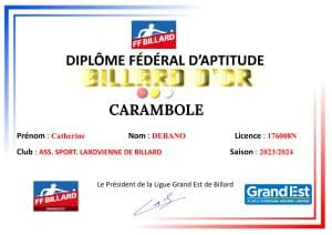 Anne-Noelle en manque de réussite ne parvient pas à décrocher le diplôme. Daniel rate d’un cheveu l’Or mais ne démérite pas en obtenant 74 points sur les 80 nécessaires. Ne doutons pas que Daniel, reviendra à la charge l’année prochaine.