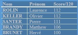 Résultats des candidats